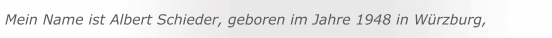 8 Jahre Grundschule hinter mich gebracht, 3-jährige Lehre als Speditionskaufmann erfolgreich beendet, 18 Monate Grundwehrdienst geleistet, 1973 Heirat mit meiner Frau Jutta in Ulm, 1985 zurück nach Würzburg, hier bis zum Jahre 2001 bei Spedition Pabst in Gochsheim, zunächst als Speditionskaufmann und weiter als Bereichsleiter Disposition gearbeitet. 1974 wurde meine Tochter geboren und hat selbst 3 schöne, gesunde Kinder und hat mich damit zum 3-fachen Opa gemacht.